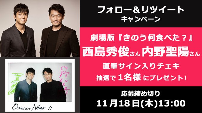西島秀俊さん&内野聖陽さんの直筆サイン入りチェキをプレゼント 🍚🥢