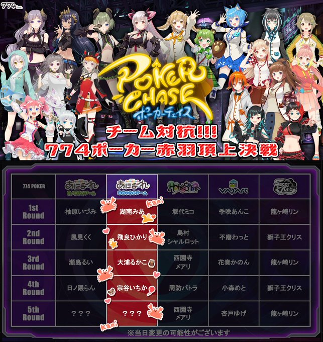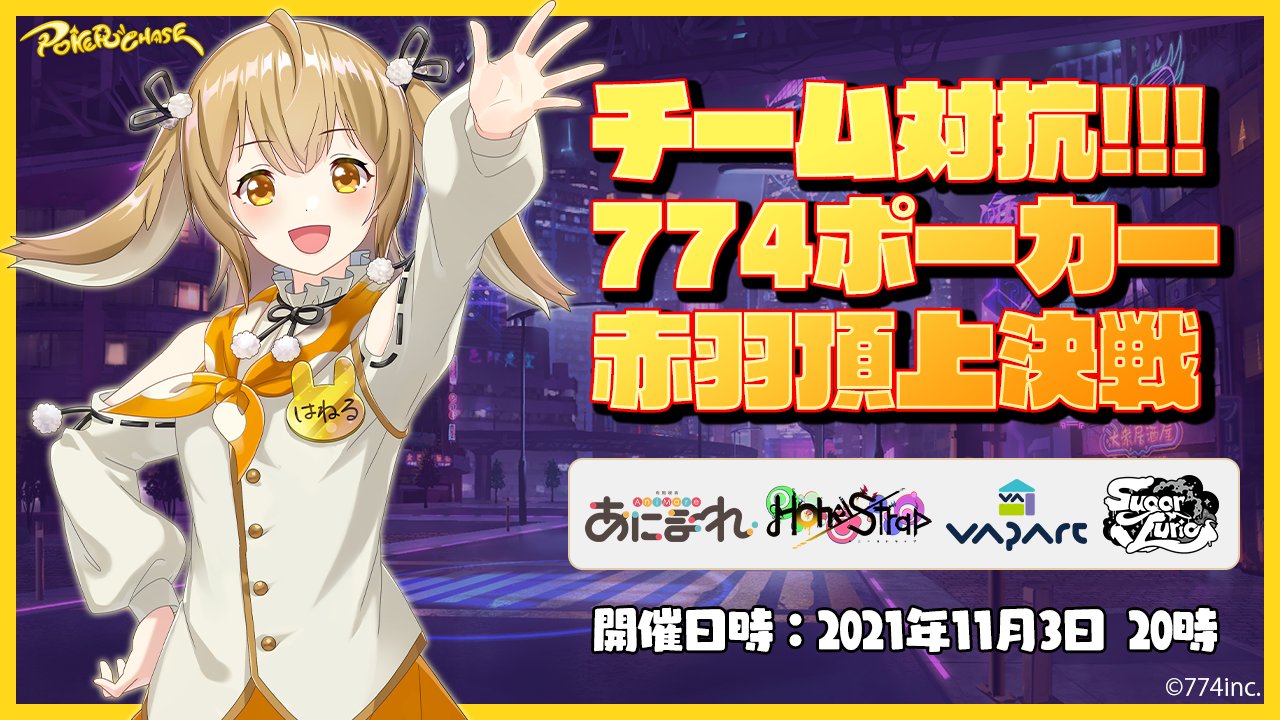 本日20時より、#774inc 主催企画「チーム対抗!!!774ポーカー赤羽頂上決戦」の放送を開始します!