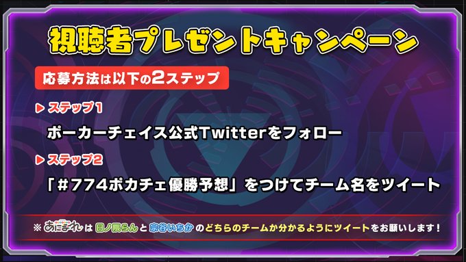 開催を記念して #774ポカチェ優勝予想 視聴者プレゼントキャンペーンも実施中♪当日の試合開始直前まで受付中です!