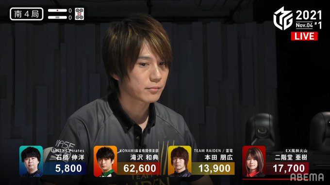 #麻雀 #Mリーグ #EX風林火山 #KONAMI麻雀格闘倶楽部 #滝沢和典 #二階堂亜樹 #本田朋広 #石橋伸洋 pic.twitter.com/ACAuKmT0qL
