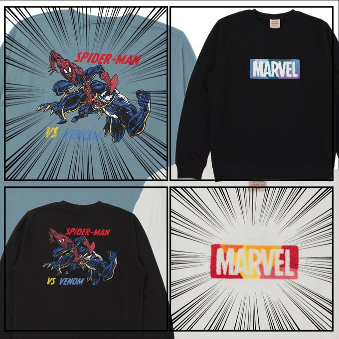 #スパイダーマン と #ヴェノム が戦うシーンと、定番のボックスロゴをサガラ刺繍で立体的に表現したデザインの4アイテムがラインナップ⚡️