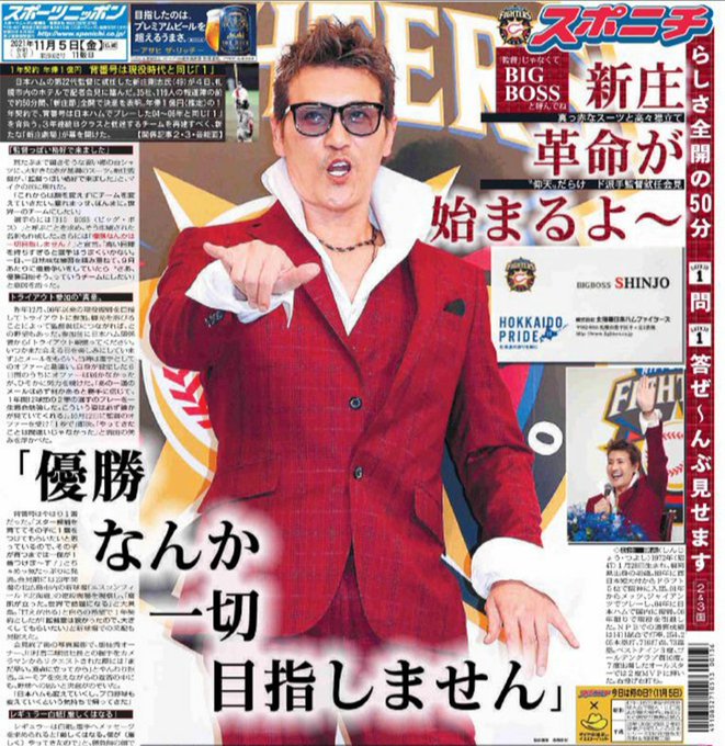 グラサン、襟立、ド派手スーツの新庄監督が所信表明「今日はビシッと監督っぽい格好で来ました」 tokyo-sports.co.jp/baseball/npb/3… pic.twitter.com/FvUS28fBd2