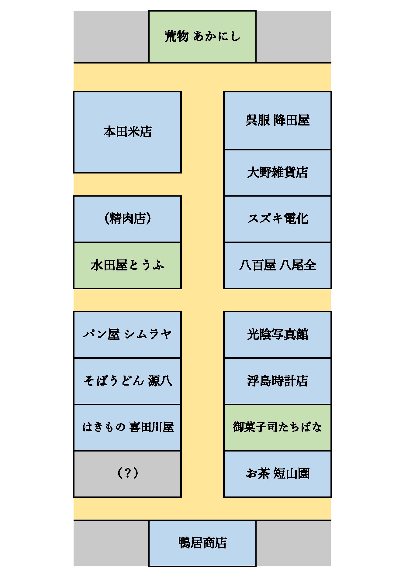 朝丘町商店街の略図を作ってみました。