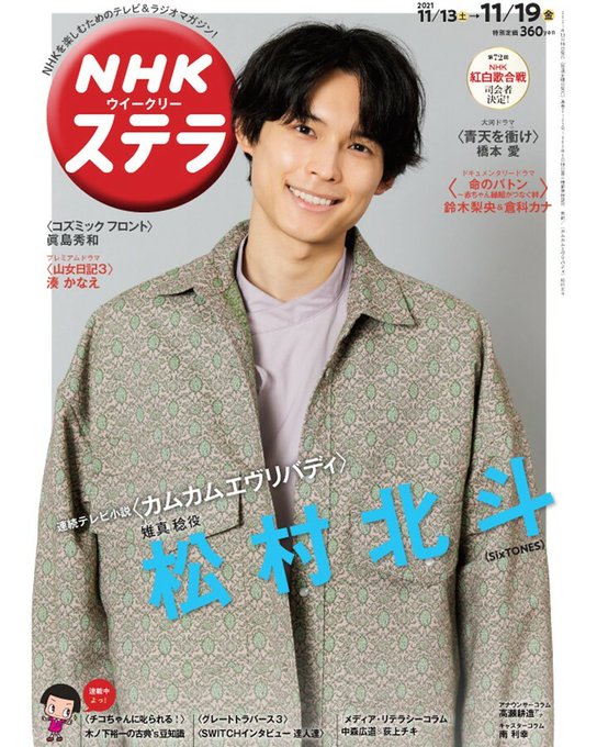 【11/19号・11/10発売】表紙は、連続テレビ小説〈#カムカムエヴリバディ〉の雉真稔役 #松村北斗 さん(#SixTONES)です。