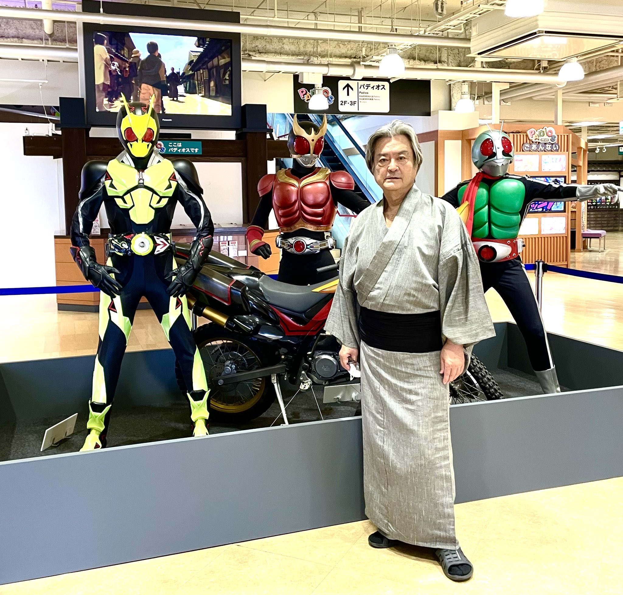 なんと 朝ドラ「 カムカムエヴリバディ」の撮影場所近くに仮面ライダーがいました。🚲