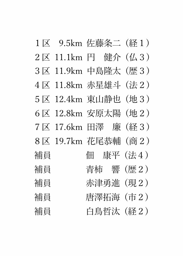 53回 #全日本大学駅伝 区間エントリー 【#駒澤大学】