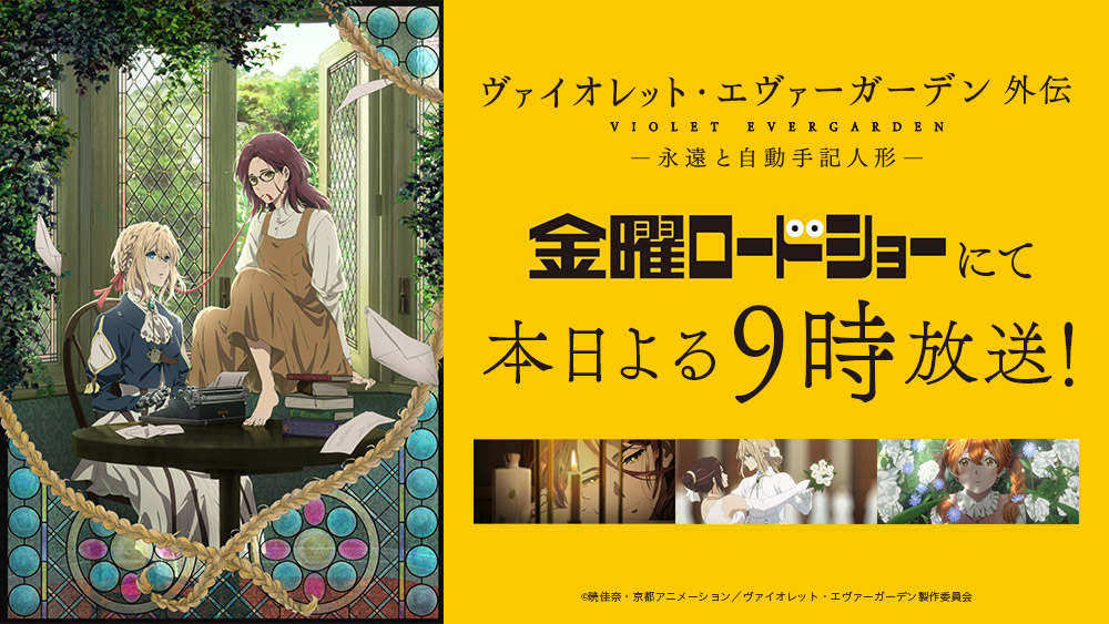 本日よる9時より「ヴァイオレット・エヴァーガーデン 外伝 - 永遠と自動手記人形 -」が #金曜ロードショー にていよいよ放送です。 pic.twitter.com/4bVyRRVVqZ