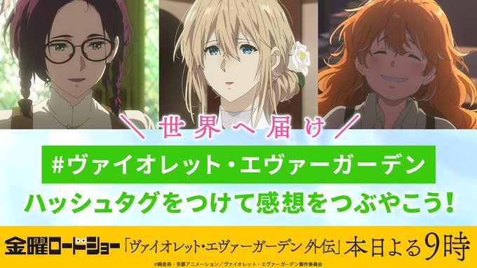 このあとすぐ! 推奨ハッシュタグは「#ヴァイオレット・エヴァーガーデン」です!今週も皆さま一緒に楽しみましょう! pic.twitter.com/ijbyXNFrPi