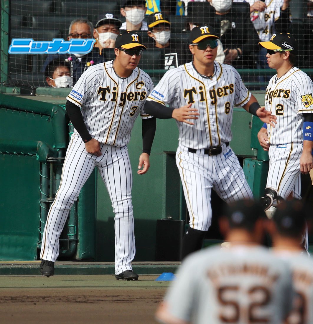 大山選手、佐藤輝明選手、梅野隆太郎選手はベンチで勝負の時に備えます🔥