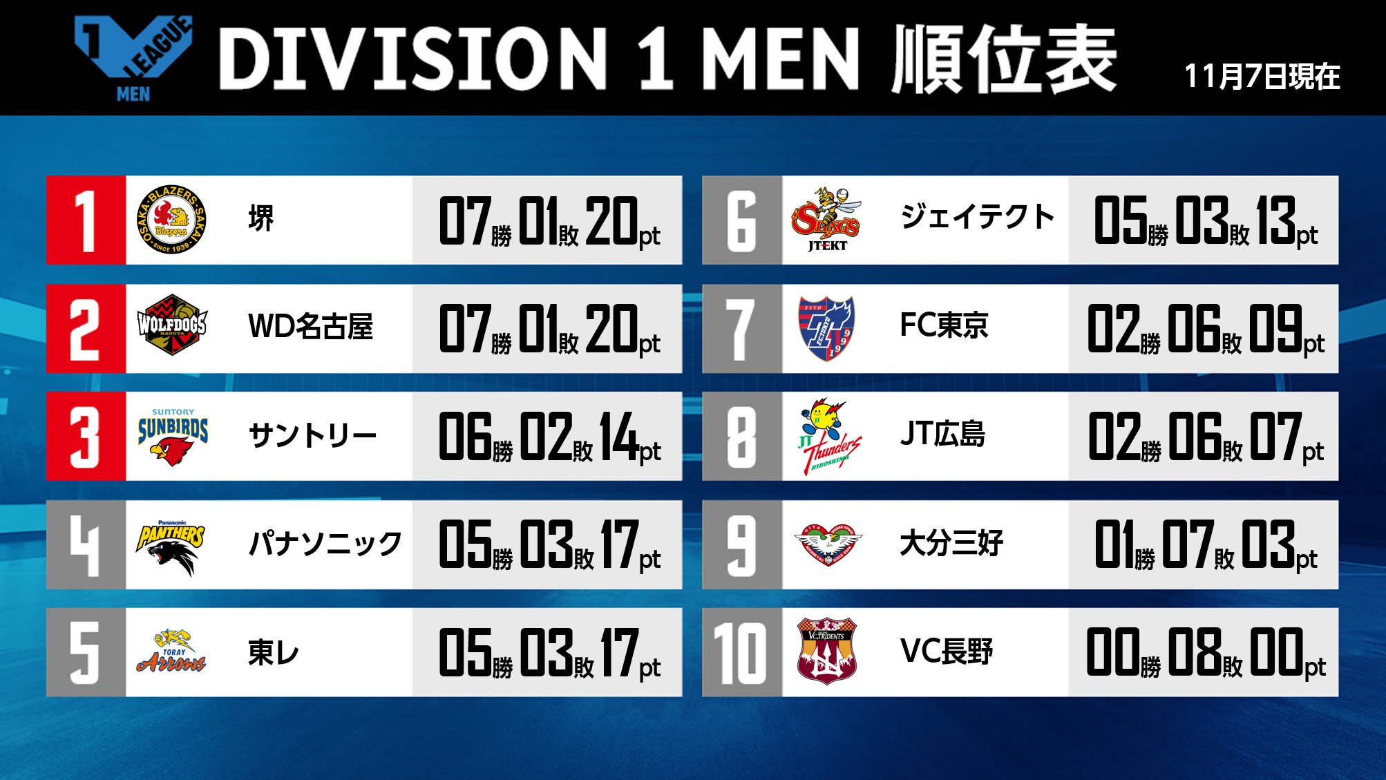 【#V1男子 順位表】