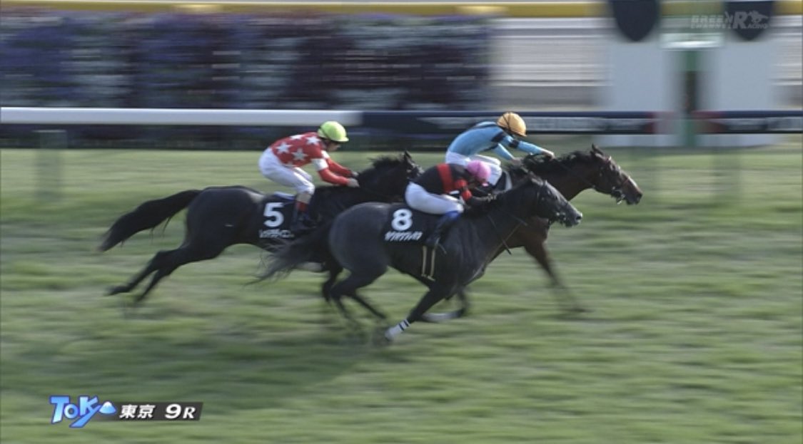 東京9R・百日草特別(1勝クラス、芝2000m)は #オニャンコポン が後続の追撃をクビ差しのいでデビュー2連勝