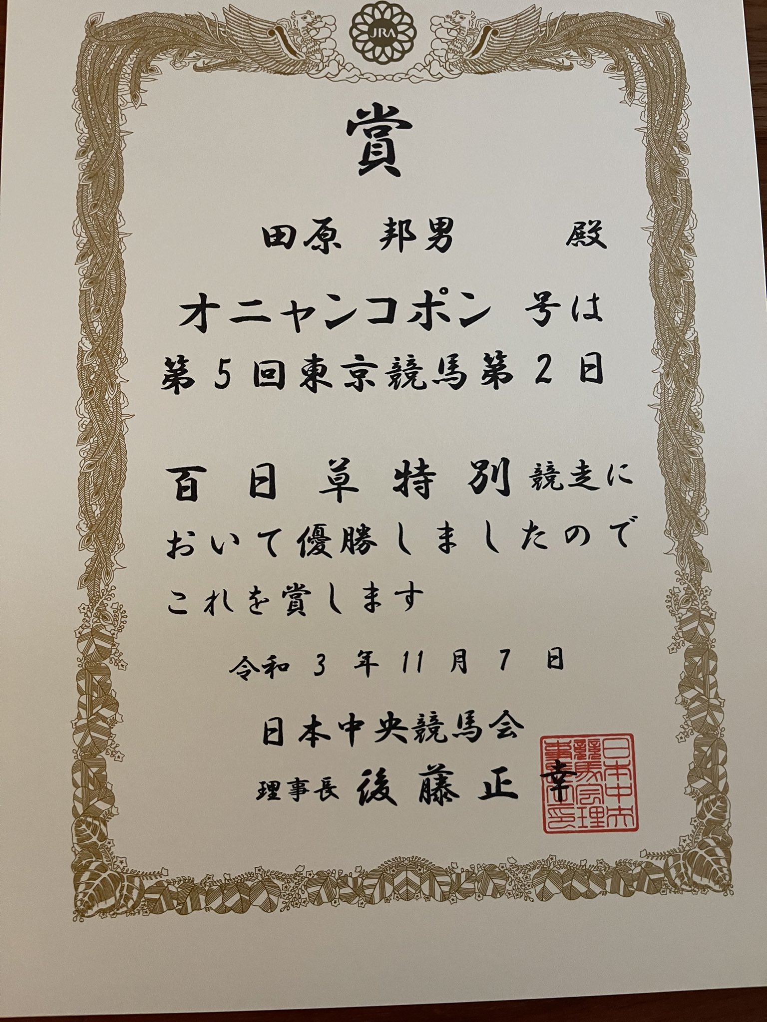 前走の新馬勝ちに続き百日草特別も優勝出来ました!
