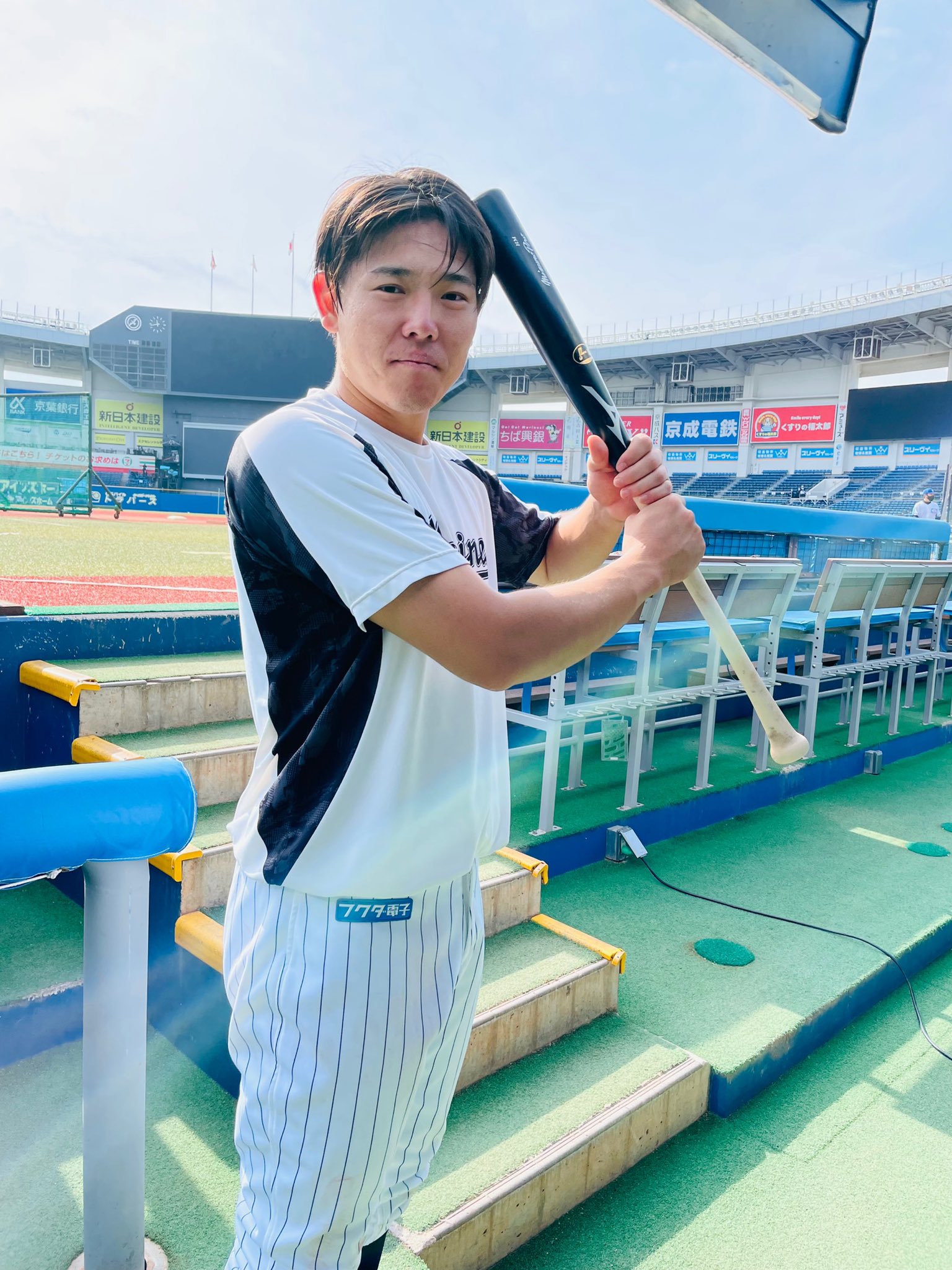 昨日ツーベースを放った #藤岡裕大 選手!試合前いい笑顔です!「皆さん大阪そして日本一に向け一緒に戦ってください!」#chibalotte #広報 #パーソルCSパ pic.twitter.com/6BnM08EYJ4