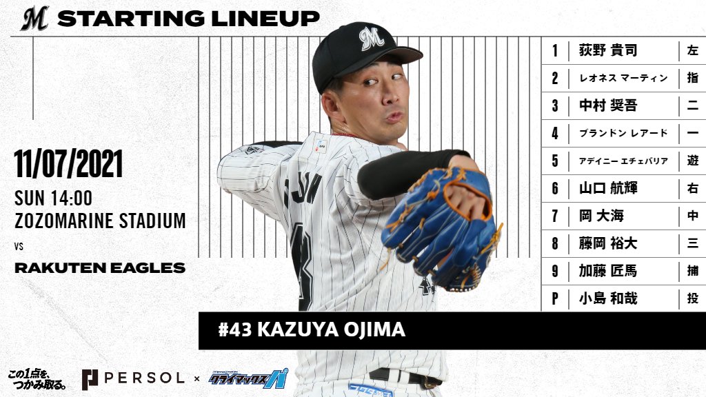 #chibalotte #MarinesStartingLineup #パーソルCSパ pic.twitter.com/UgS0xCFjI9