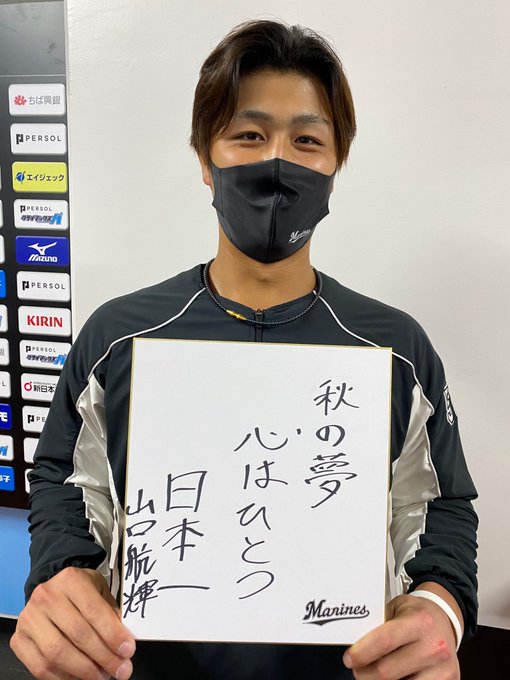 「CS初安打緊張したけど1本出て嬉しかった!今日も勝利をつかみ取ります!」と意気込む #山口航輝 選手!ファイナルステージ進出まであと1勝!今日勝ちます!#chibalotte #広報 #パーソルCSパ pic.twitter.com/QMq0orSKkT