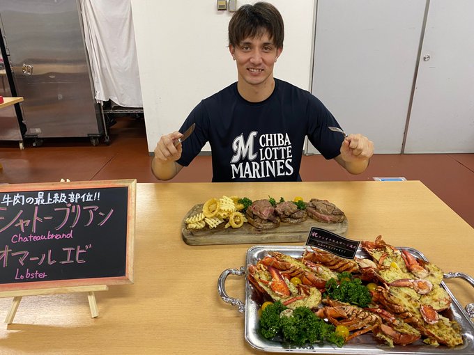8回をしっかり抑えた #佐々木千隼 投手!ご褒美のシャトーブリアン!力をつけて大阪へ!そして日本一だ!#chibalotte #広報 #パーソルCSパ pic.twitter.com/ix7nvzhFiX