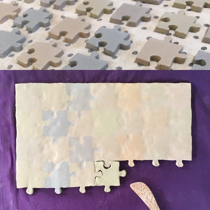 パズルと同じ様にピースを組み繋げて作った陶器です。