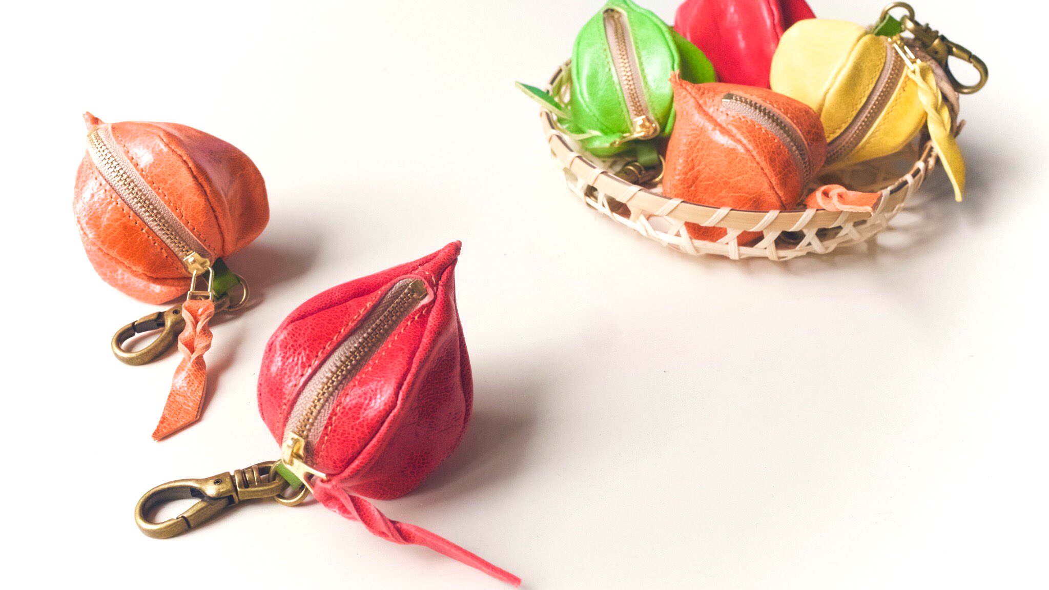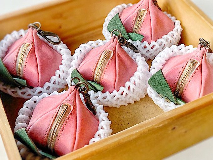 🚩マーブル染め革雑貨、果物型の革ポーチ、財布販売します