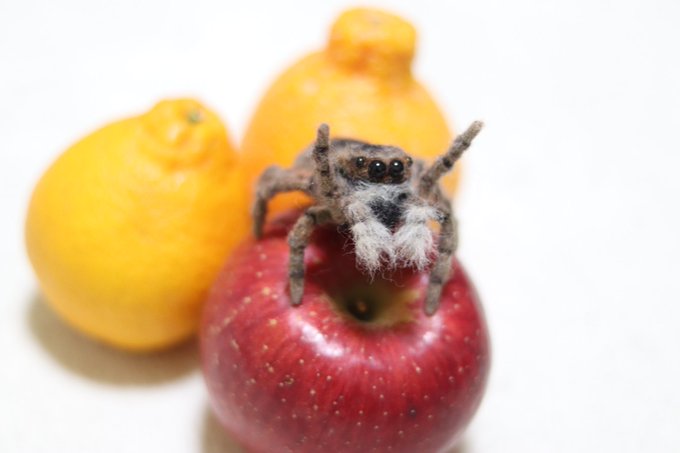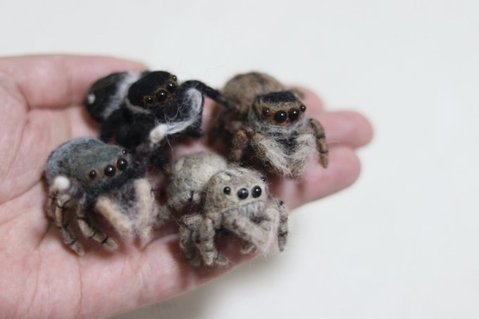 羊毛で色んな蜘蛛を出来る限りリアルに作ってます。