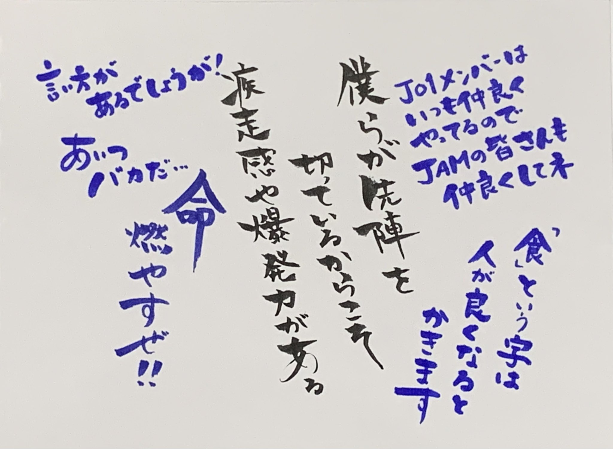 JO1とJAMが一度も会えずに過ごしたこの1年半…工夫したり知恵を出し合って苦難を共に乗り越えてきた時間はどんな言葉や物よりも強固なものだと確信してる…JO1の最大の強みはJAMだってこと…これに尽きる