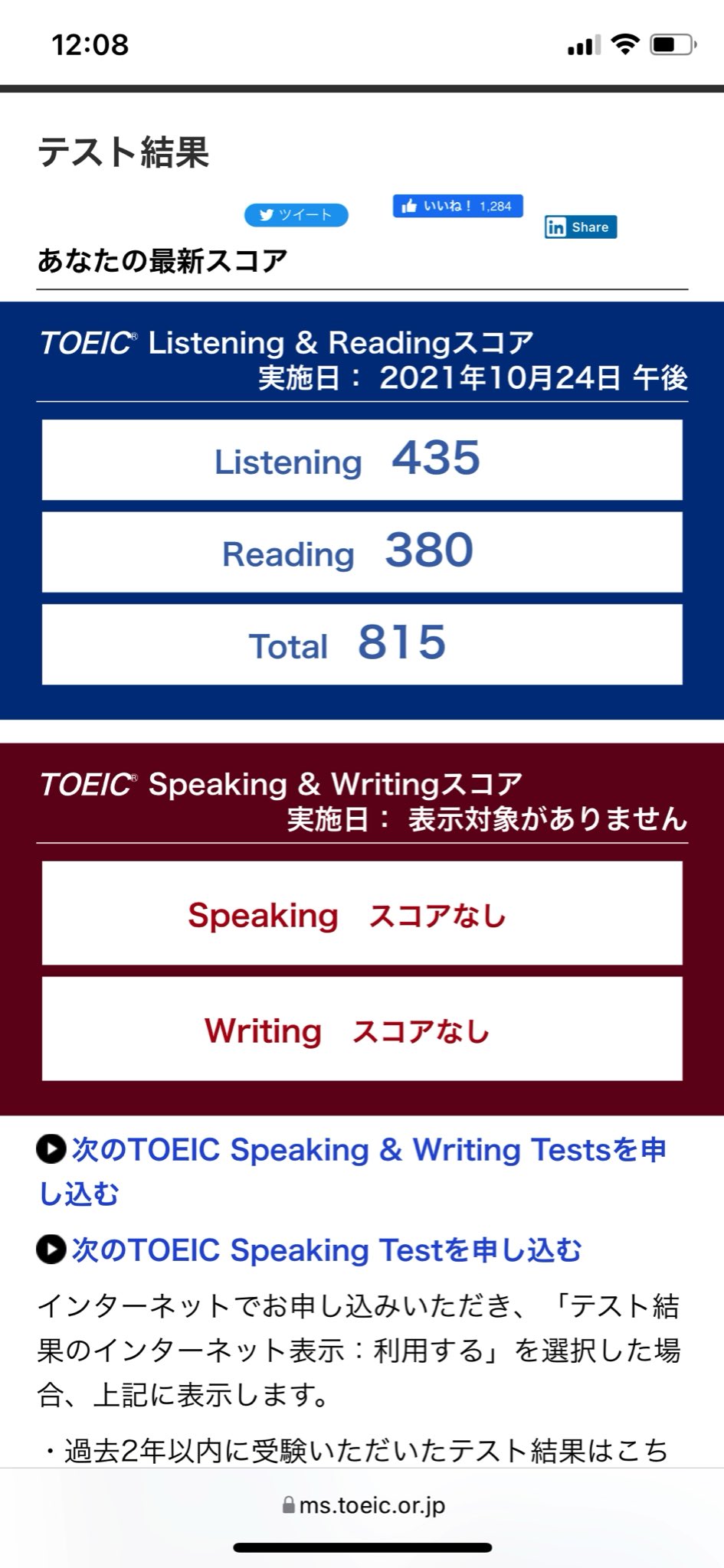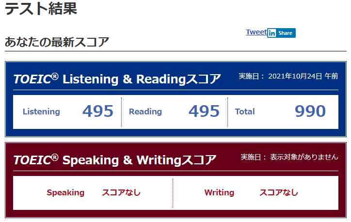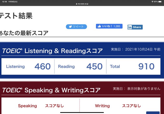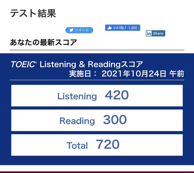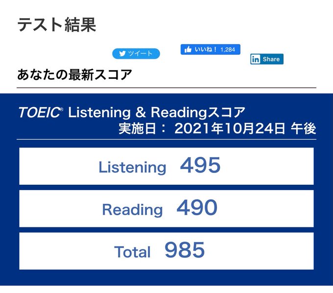 #TOEIC #結果 pic.twitter.com/iUNxk4c9o5