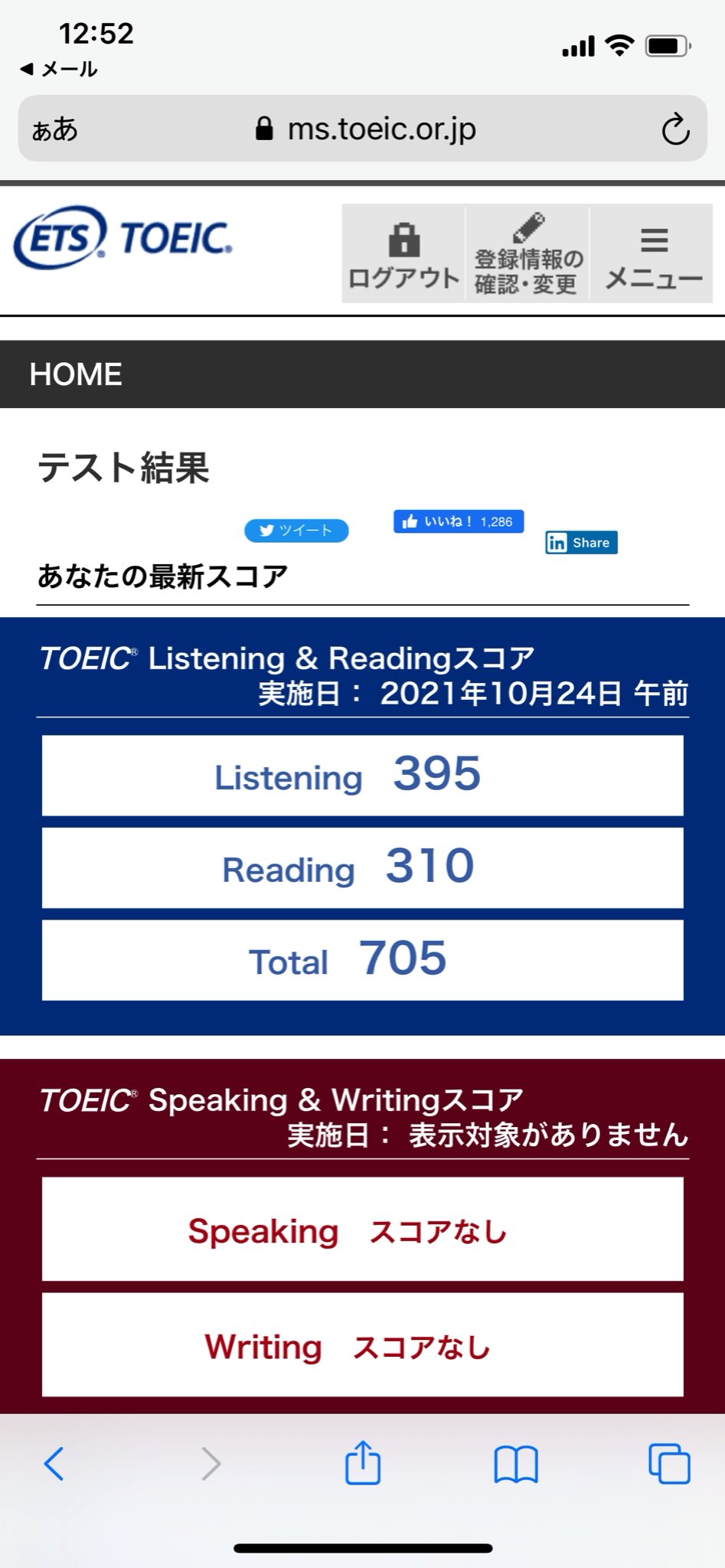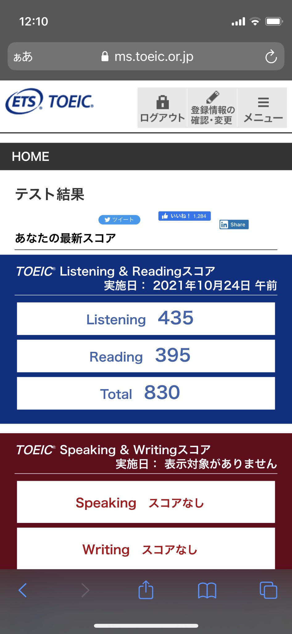 【第280回 TOEIC結果】 #TOEIC