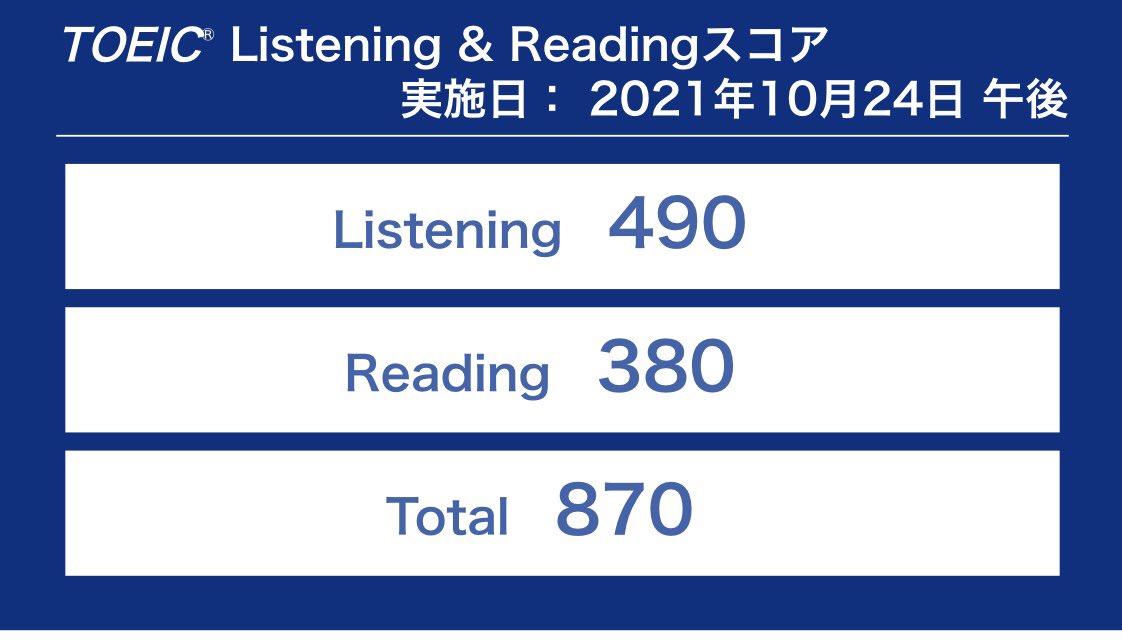 10/24の #TOEIC 870でした〜