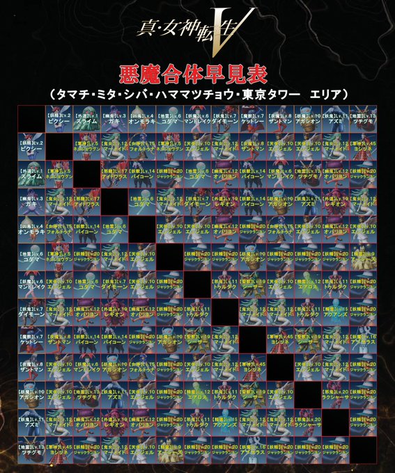 いよいよ本日 #真・女神転生V が発売となりました!これからプレイしていただく皆様に一足先に、序盤で出現する悪魔から合体可能な合体早見表を公開いたします!