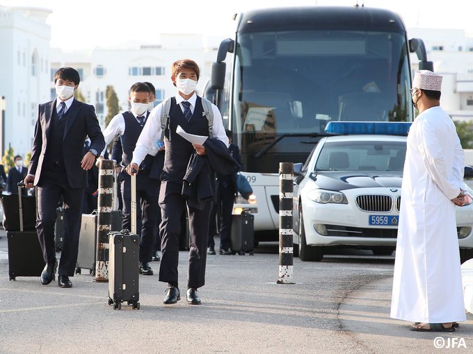 昨夜、ベトナム代表に勝利した #日本代表。試合後、ハノイを発ち、現地時間の早朝にオマーンの首都・マスカットに到着。