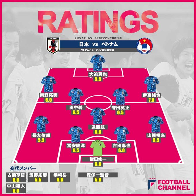 ベトナム戦、監督がまたも最低点。その理由は…。最高評価はもちろん…【日本代表どこよりも早い採点/W杯アジア最終予選】