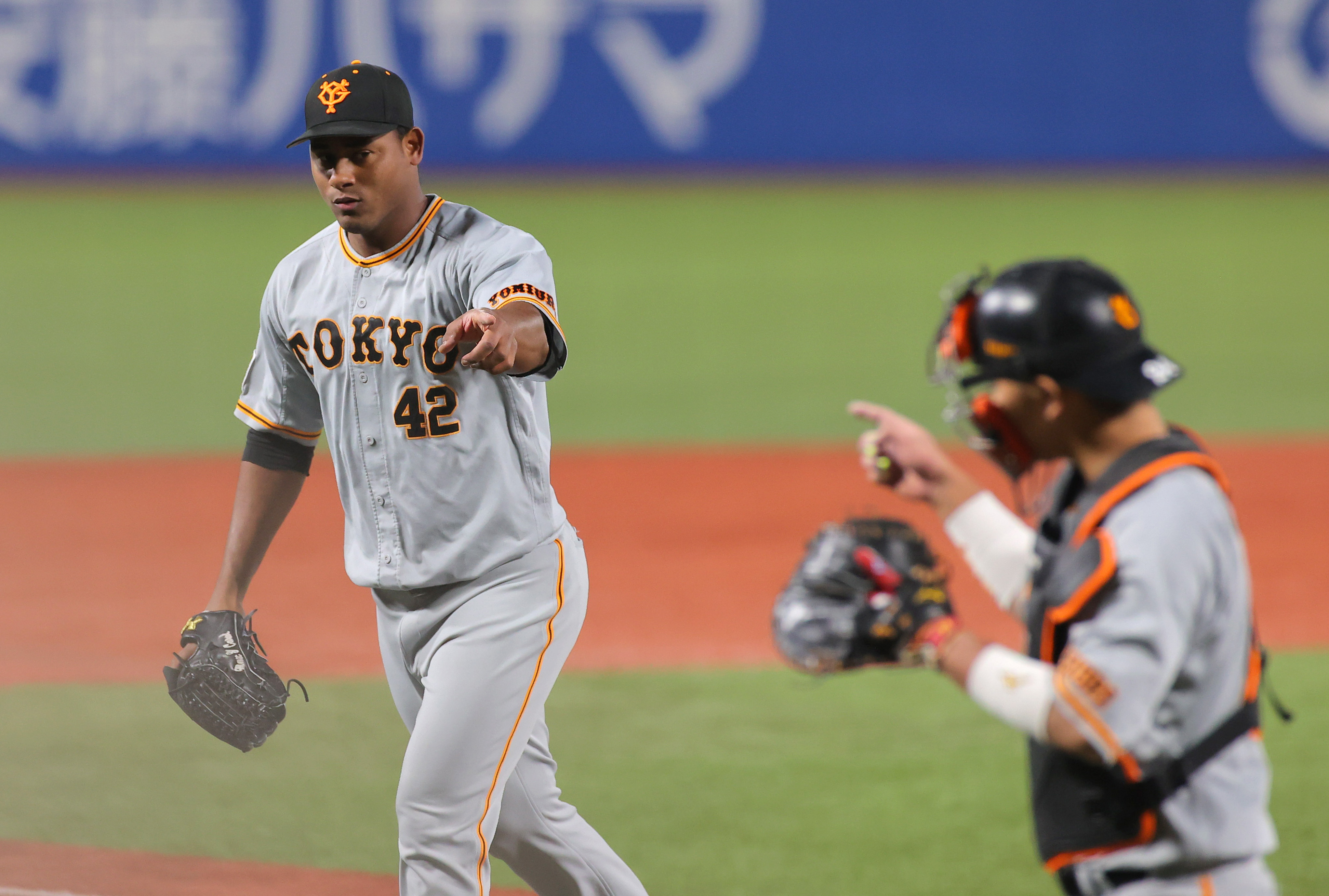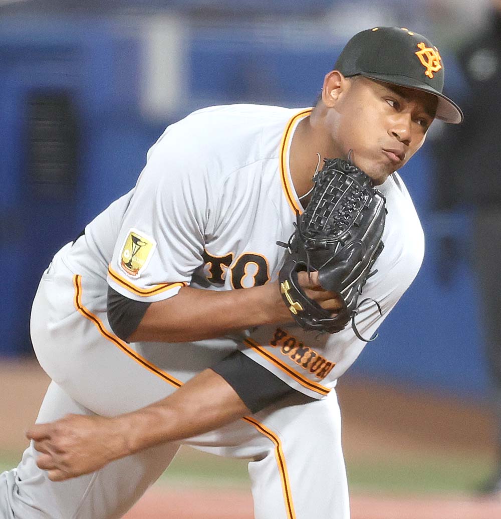二回までパーフェクト投球を披露した #メルセデス 投手 #大城卓三 選手(撮影・福島範和)
