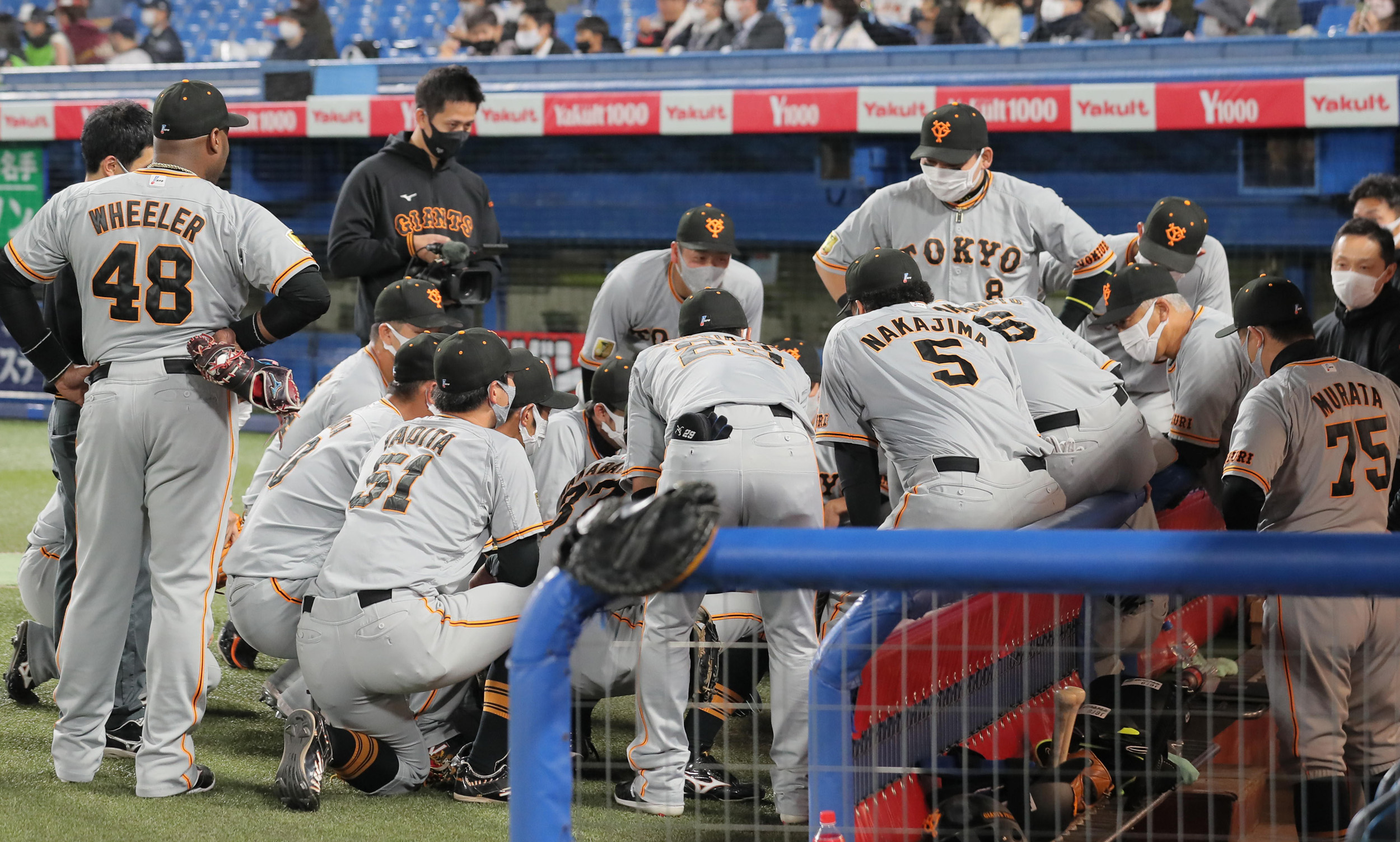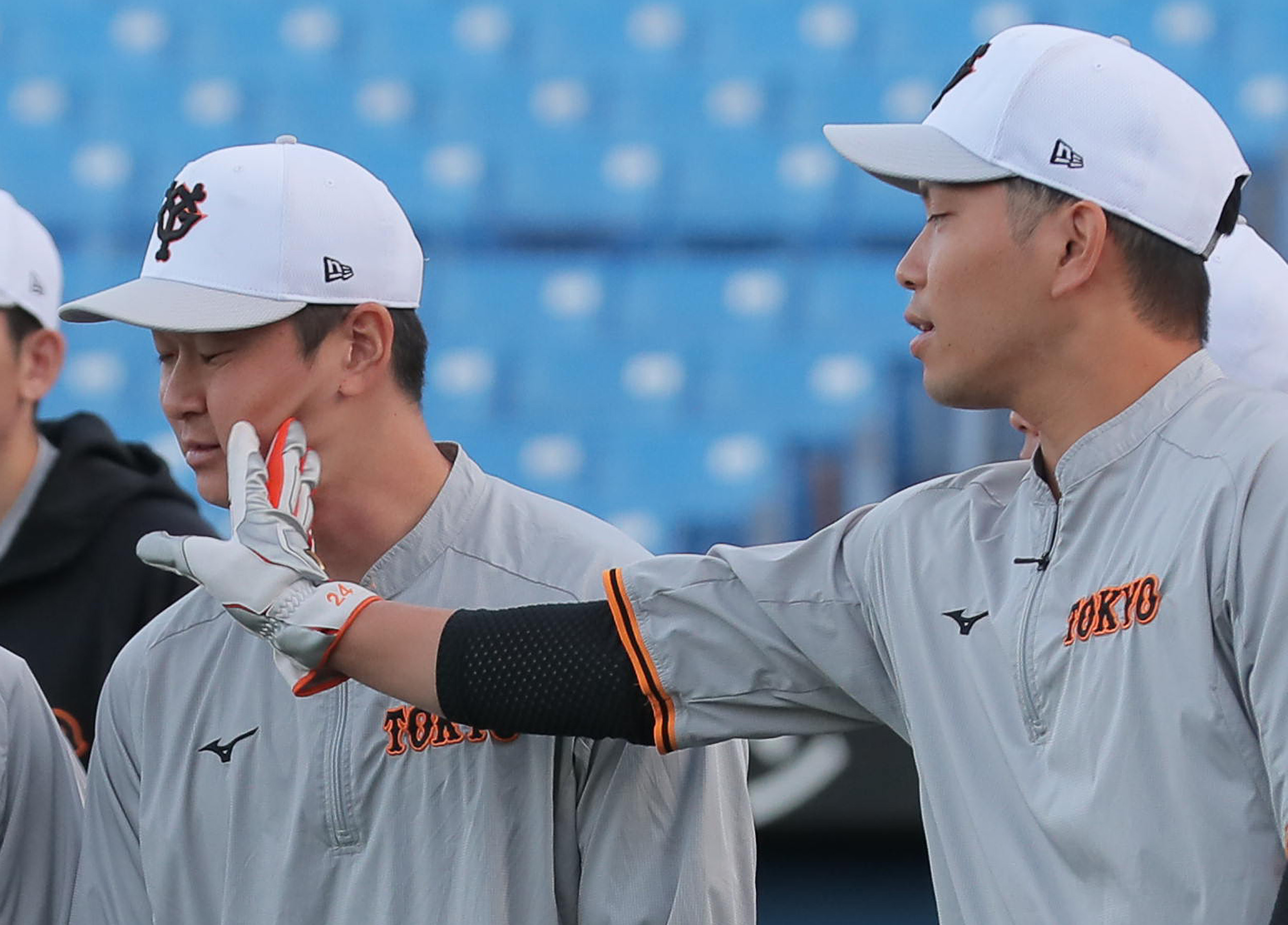 #亀井善行 選手に円陣の声出し役を促した #坂本勇人 選手(撮影・中井誠)