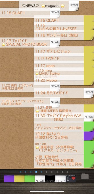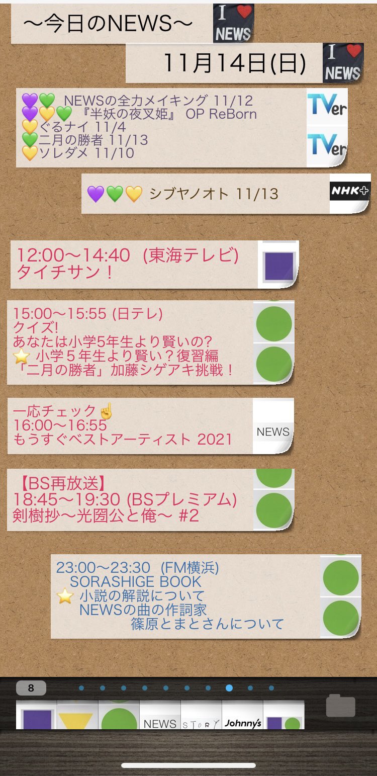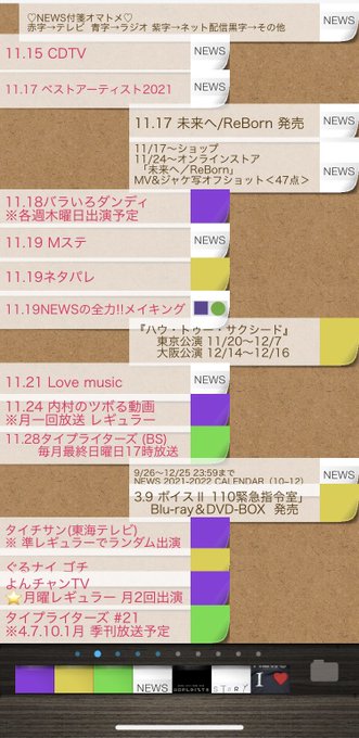 11/14日 『今日のNEWS』&付箋オマトメ💜💛💚
