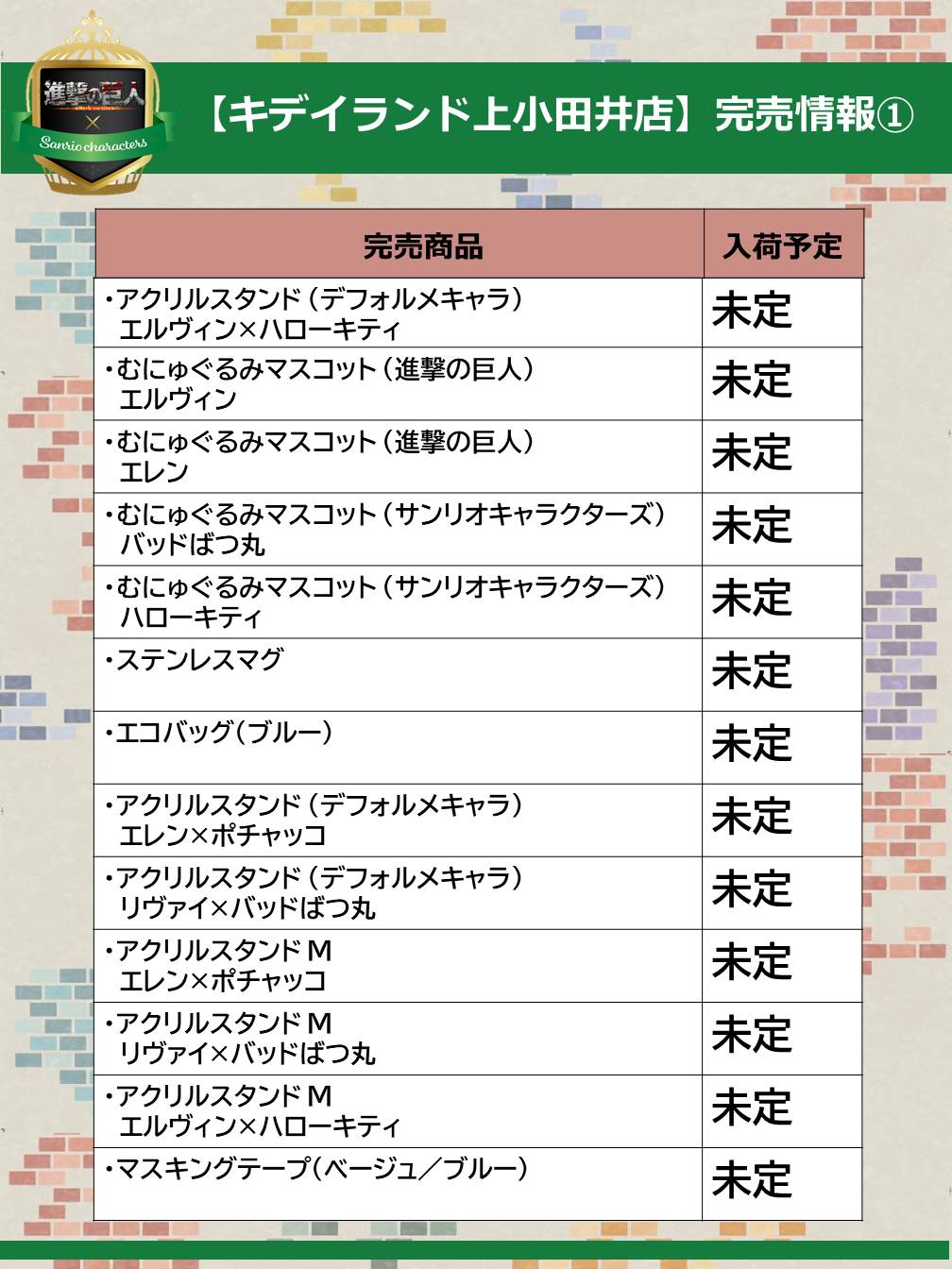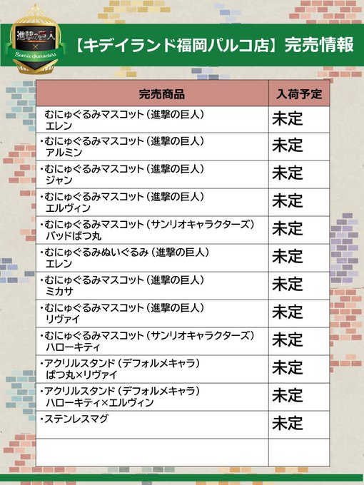 #進撃の巨人 #shingeki #サンリオ pic.twitter.com/We076tU4J9