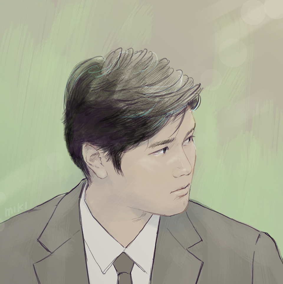 爽やかなグレーのスーツ姿が非常に似合っています👀