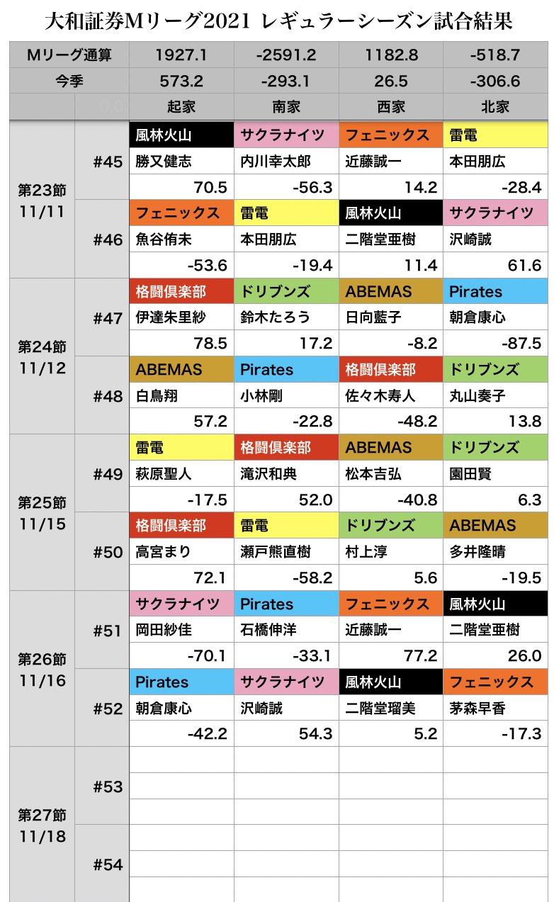 #Mリーグ pic.twitter.com/iyO9GpLxNn
