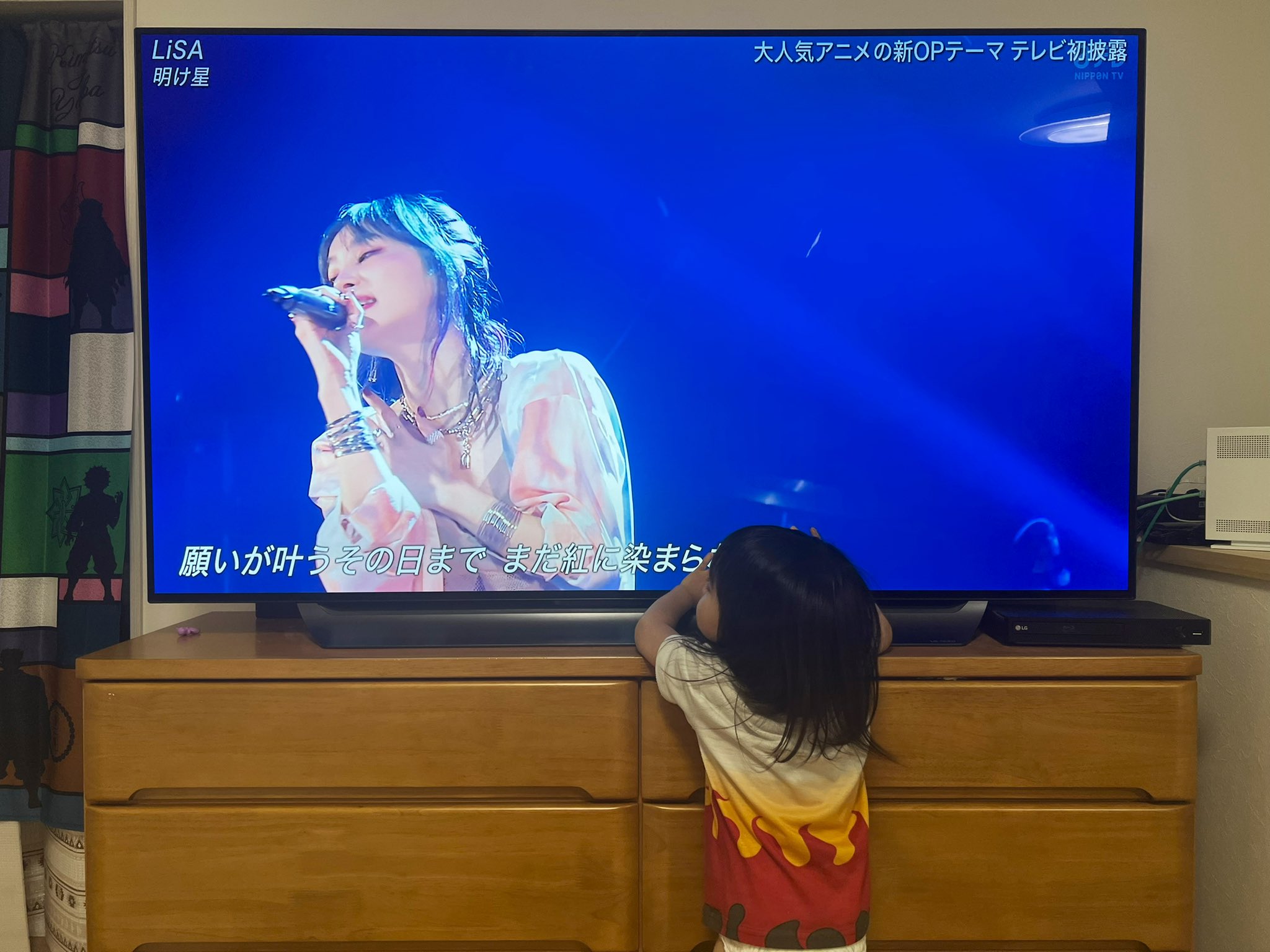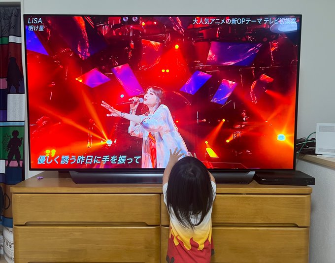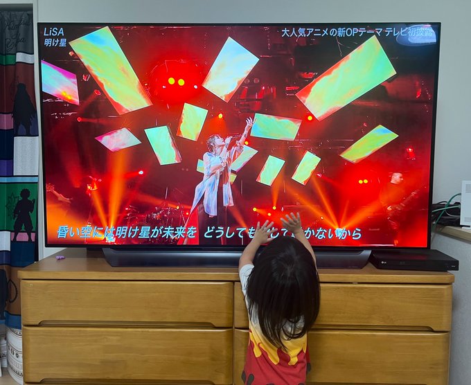 LiSAさんの明け星でると聞いた娘はテレビに近づいてLiSAさんが動く方に追いかけながら口ずさんでました😍🔥🔥🔥