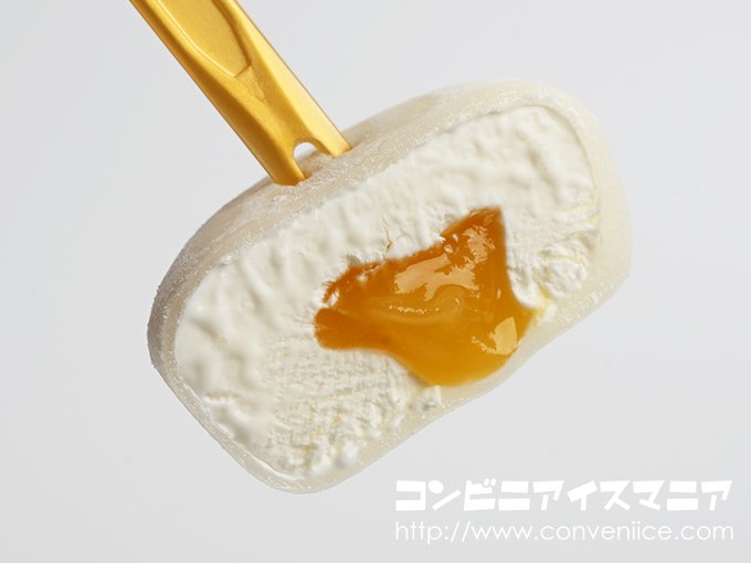 鶴乃子の味わいをイメージしたやさしい味わいの黄味あんを、むぎゅっとしたマシュマロ食感アイスとやわらかいおもちで包んだ雪見だいふく💛