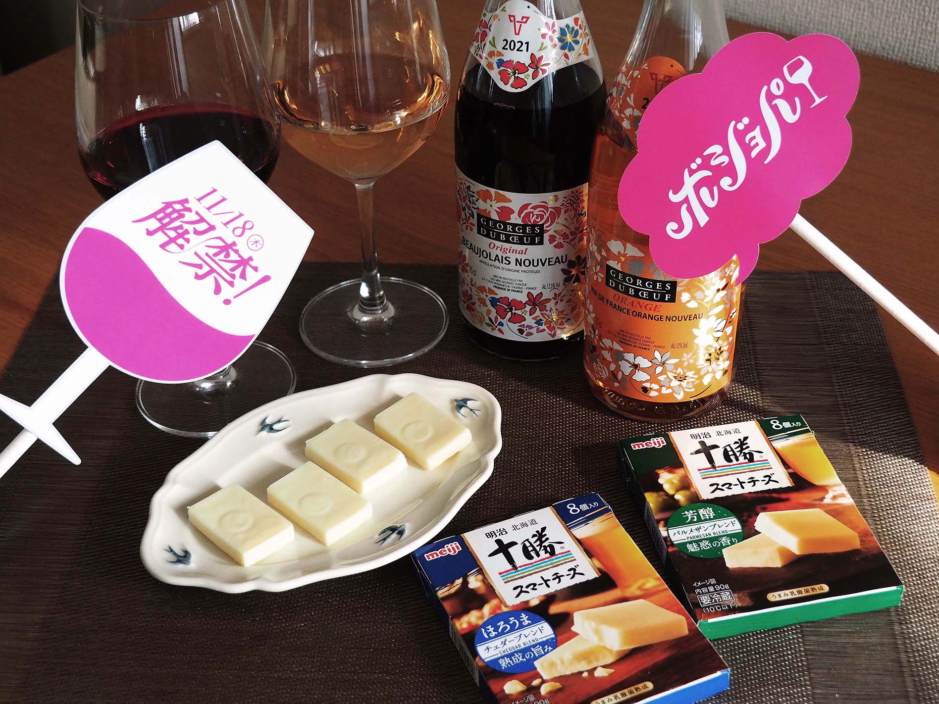 今年はおうちで、ボジョレーヌーボーとスマートチーズを交互に味わいながら、 #ボジョパ (ボジョレーヌーボーパーティー)を楽しむのもいいかも。スマ子は今夜ひとりで #ボジョパ します! pic.twitter.com/wf46lFV7wt