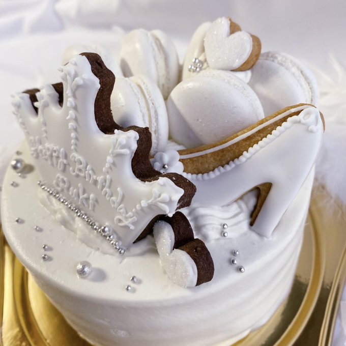 今年のお誕生日ケーキは初めてデザイン画を描いて土台のケーキまで細かく指示してフルオーダー♡真っ白でお上品にまとめたマカロンケーキ。初めてなので敢えてベッタベタのデザインのアイシングクッキーを装飾♡かわいい♡