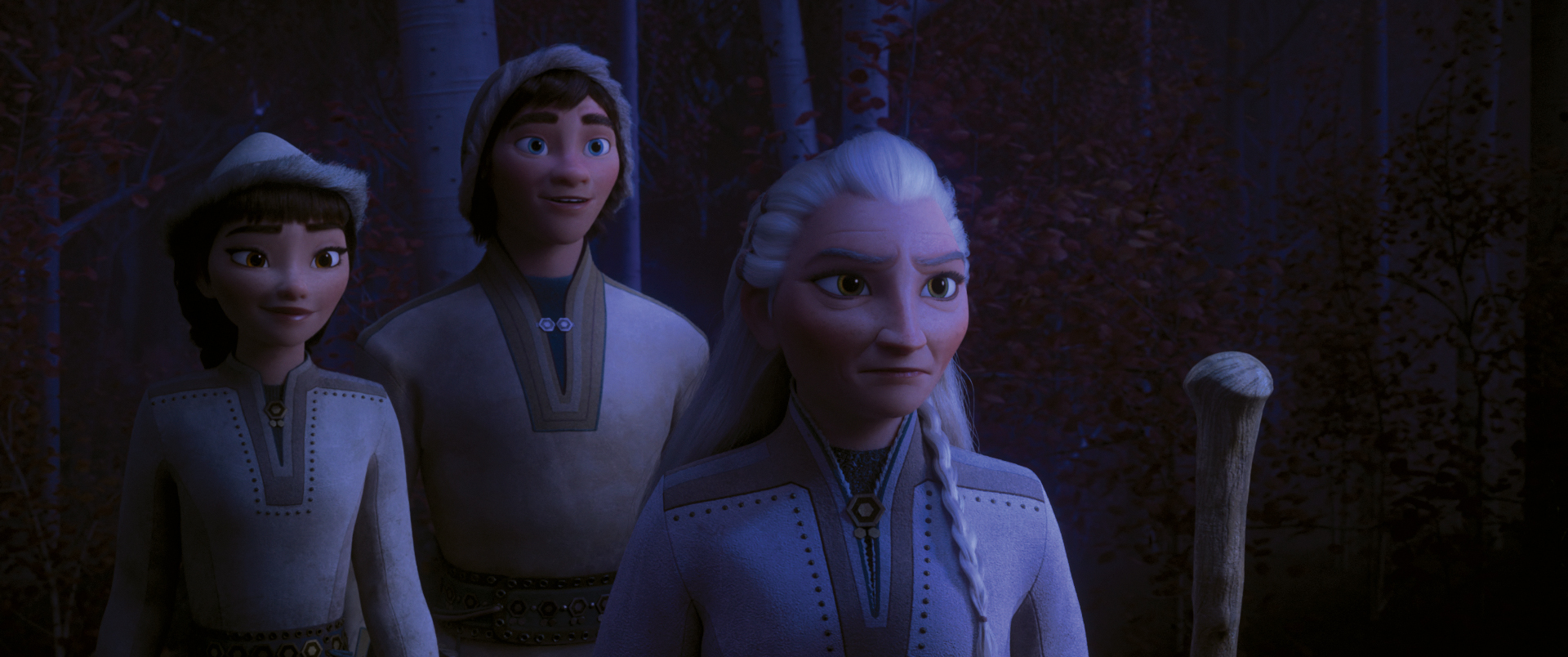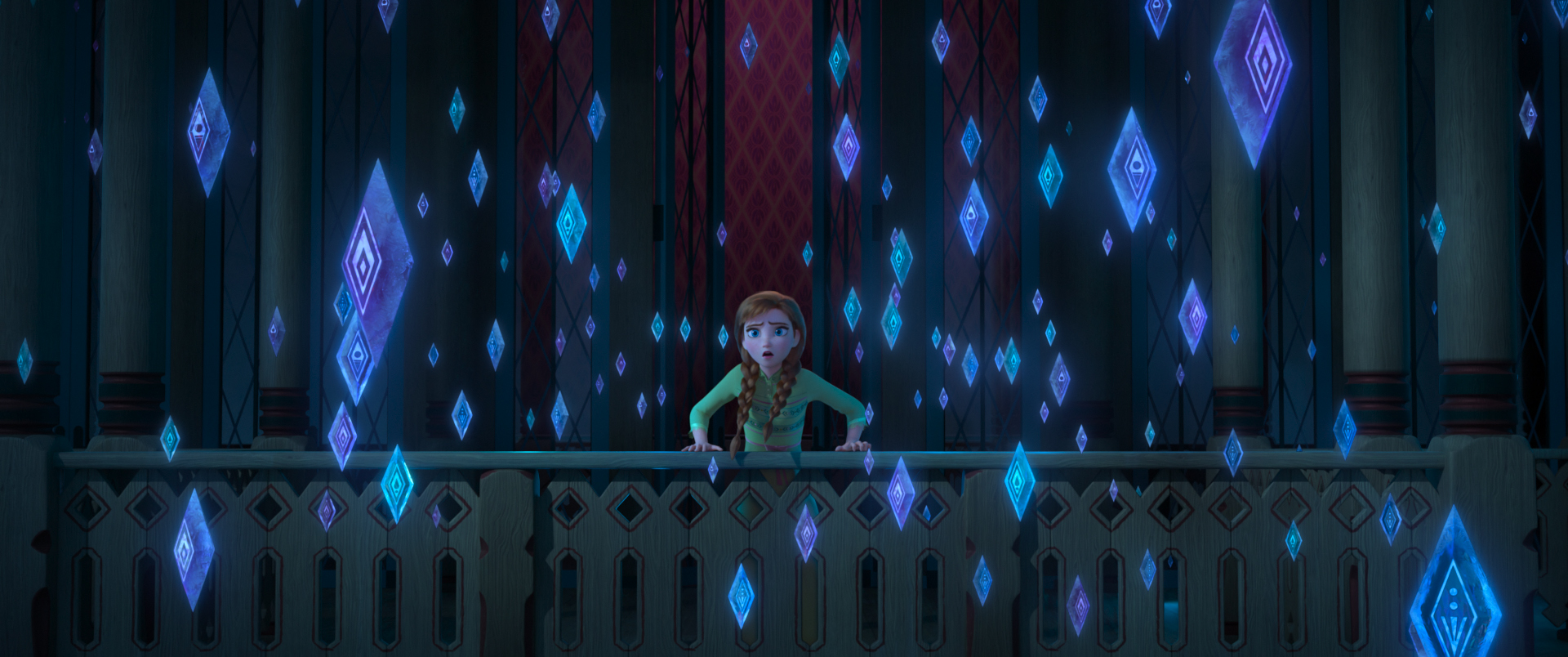 前作から3年経ち、アナの髪型はおさげ髪だと幼く見えすぎるということで、エレガントなスタイルに変更。衣装も、オープニングでは若さを象徴するアイボリーですが、物語が進むとともにダークな色味になり、彼女の成長を表現しています。