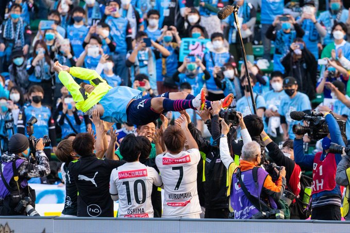 ヨシトさんの昔の仲間からの胴上げ😭泣ける…。。セレッソさん、川崎のチャント流してくれて本当にありがとうございました…泣けた。。