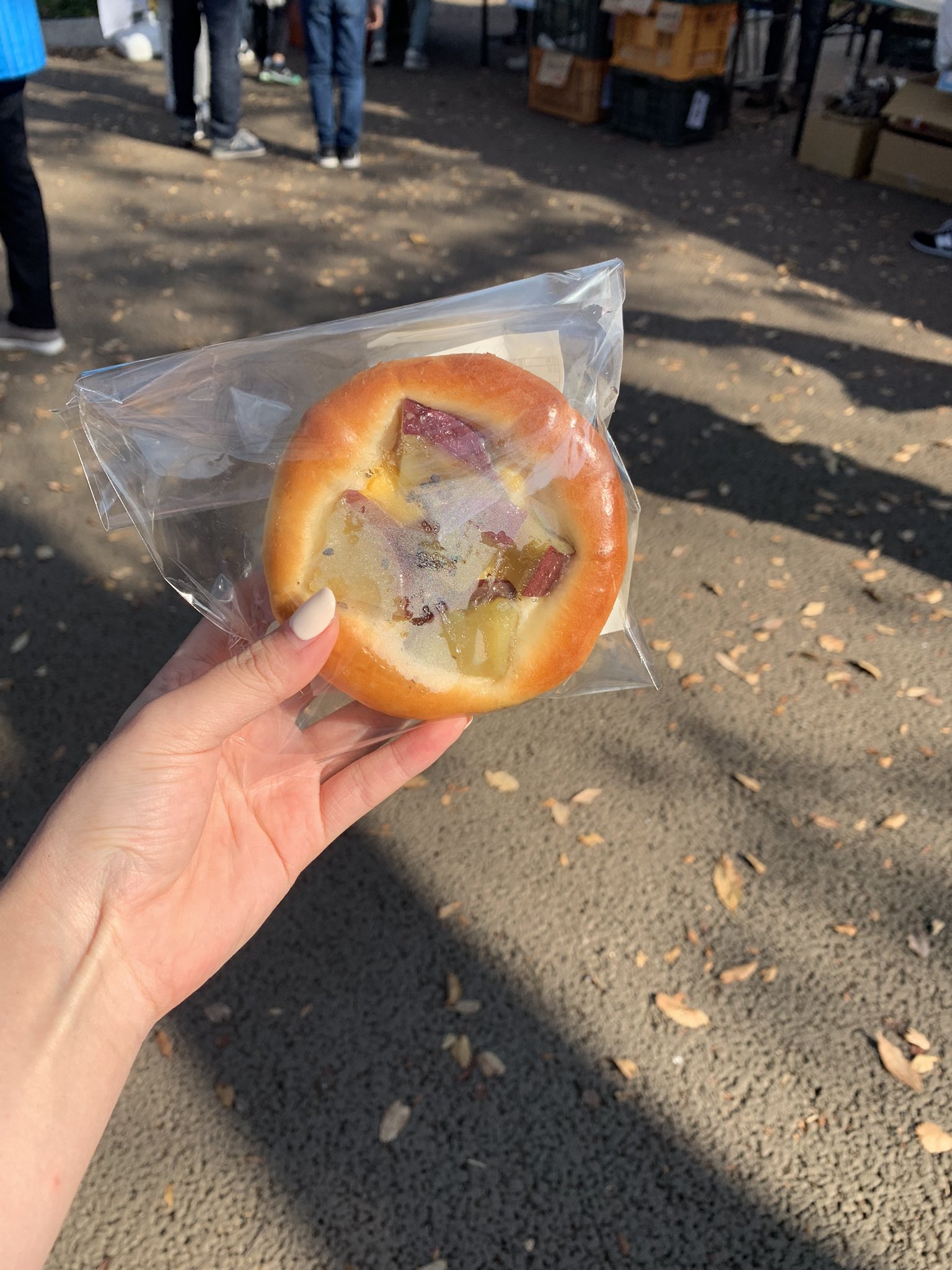 内田さんがタネから蒔いて収穫したお芋のクリームパン!