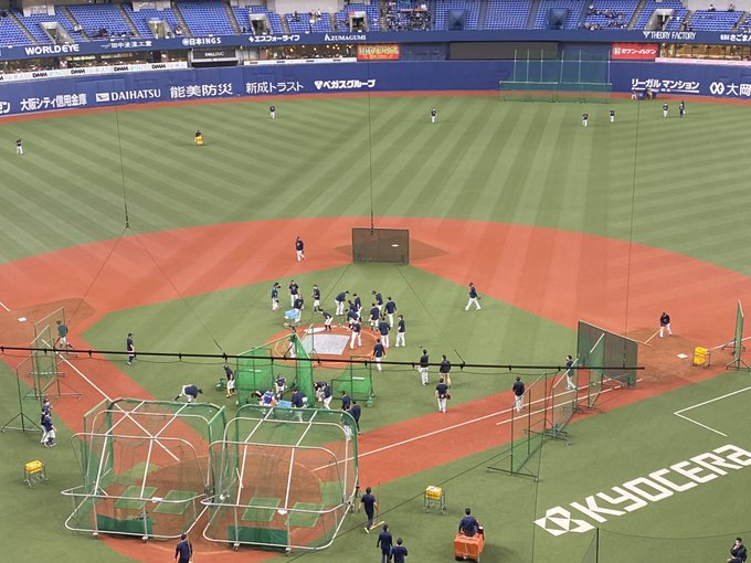 本日14時45分頃より「オンライン練習見学会」として、試合前練習の様子を京セラドーム大阪よりライブ配信いたします!