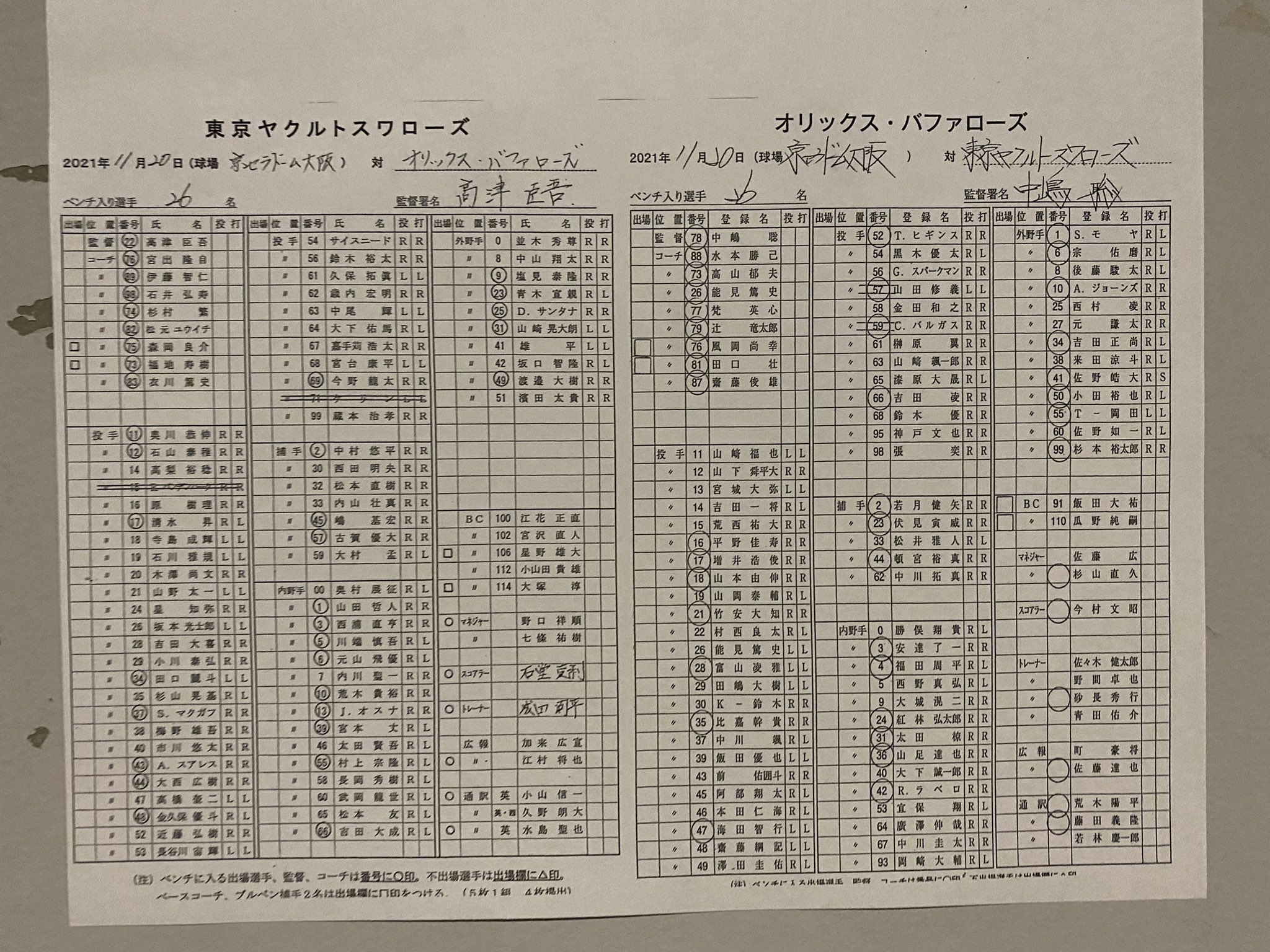 【#日本シリーズ】<#オリックス-#ヤクルト>