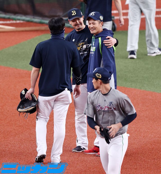 きょう先発が予想され、練習を終えた #宮城大弥 投手を手をあわせて見送る #能見篤史 投手。宮城さんの頬も緩んでいます。#オリックス pic.twitter.com/SgdCKliN5I