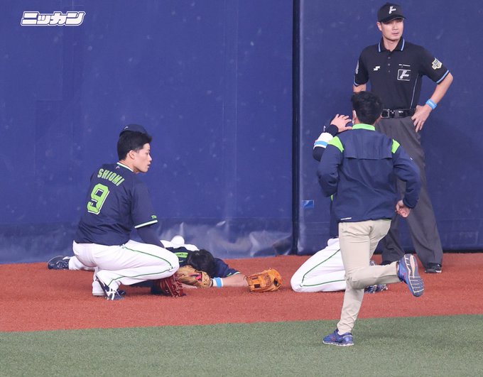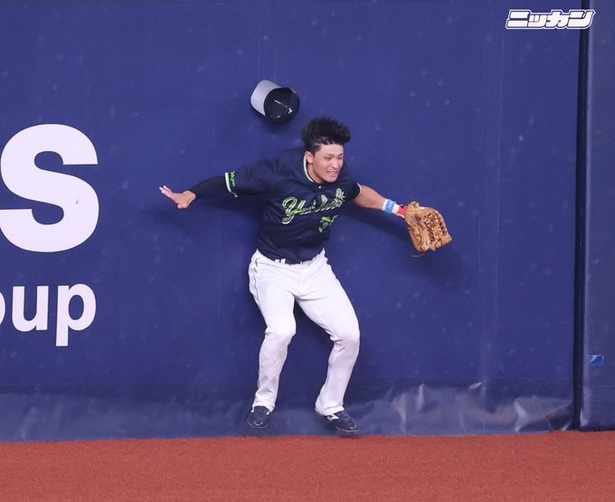 オリックス #若月健矢 捕手の大飛球を、右翼に入っている #宮本丈 内野手がフェンスに激突しながら好捕。ビッグプレーで先発の #奥川恭伸 投手を救いました。その後もプレーを続けています