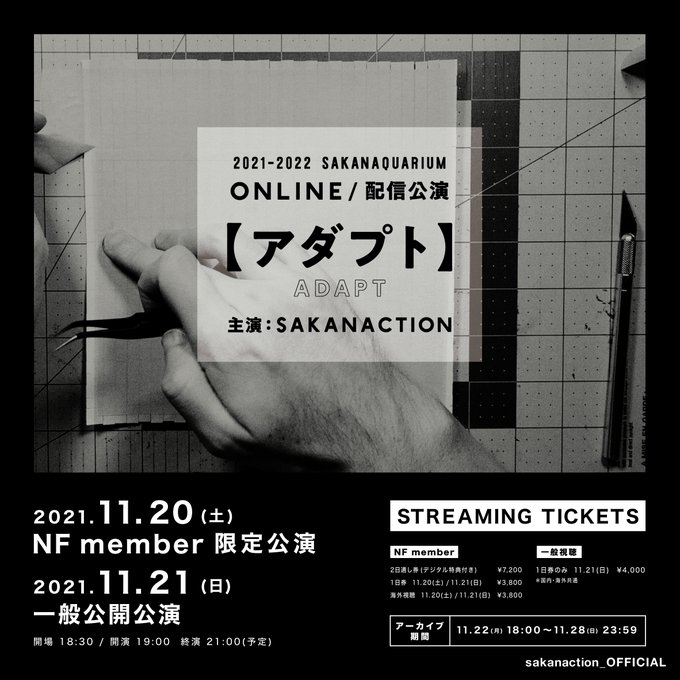 チケットは特設サイトで発売中。アーカイブ視聴もあるので、リアルタイムで観られない方も是非。 #アダプトONLINE #サカナクション