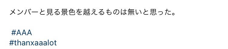 「この先の未来はどうなるかわからないし不安になることもあると思う。でも過去は変わりません。不安になった時はどうか過去を振り返ってください。僕たちはいつでもいます。」日高くんのこの言葉グッときた。 #AAA #thanxaaalot