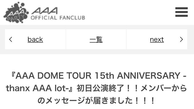 AAA Party には、メットライフドーム後のメッセージ動画が載っていますよ!!
